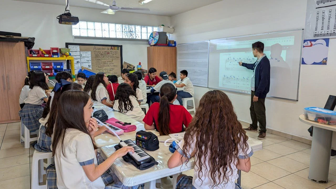 Al escuchar melodías suaves, los estudiantes aprenden a reconocer cuándo su cuerpo necesita calma. Al interpretar una pieza rítmica, ejercitan la coordinación y la atención plena. Y al componer o improvisar, descubren la libertad de crear y de expresar lo que sienten sin miedo a equivocarse.